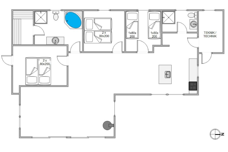På det største af to badeværelser finder I både et spabad og en sauna, som sætter prikken over i’et på den gennemførte ferie. Her kan I rigtig forkæle jer selv og hinanden i varmen og nyde jeres getaway fra hverdagen.