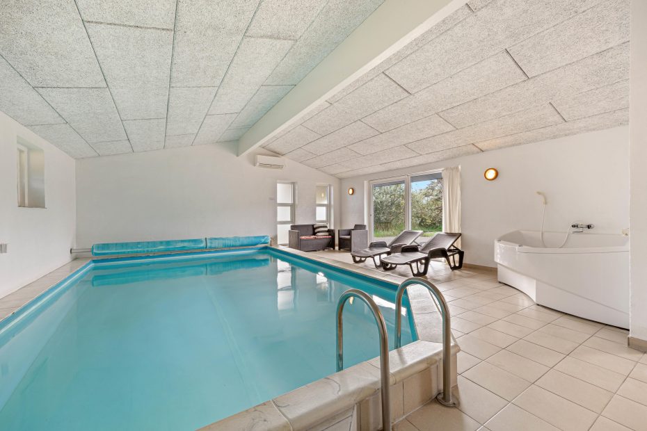 Dette dejlige sommerhus har en skøn separat tilbygning med en 24 m² stor pool og et skønt wellnesshjørne med både spabad og sauna. Her kan børn og voksne boltre sig fra morgen til aften uden at det forstyrrer hele huset. Der er tilmed også et lille møblement i hjørnet, der tillader at voksne kan sidde her og holde øje med de mindste, mens de nyder den dejlige pool og alt det sjov som den med giver.