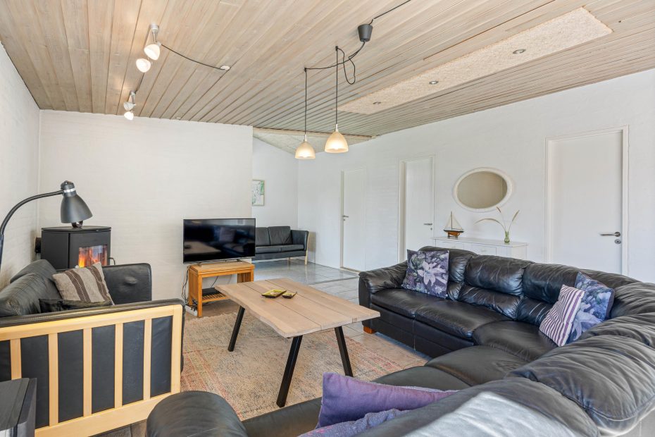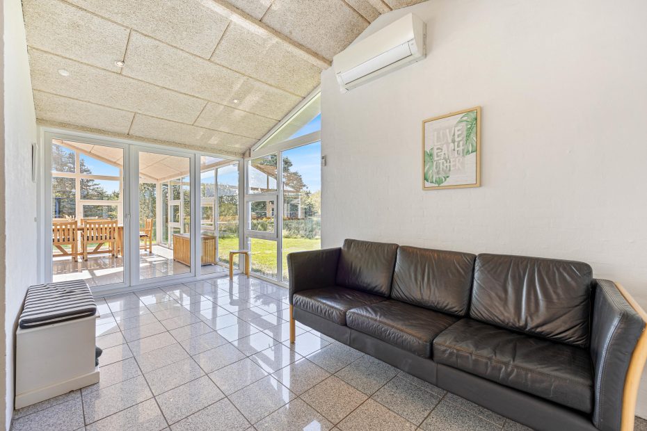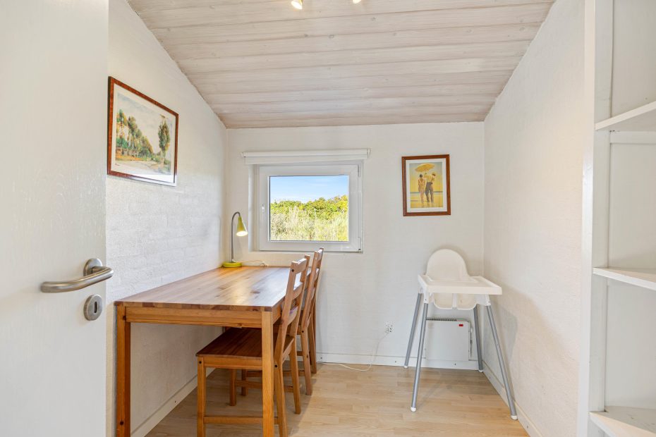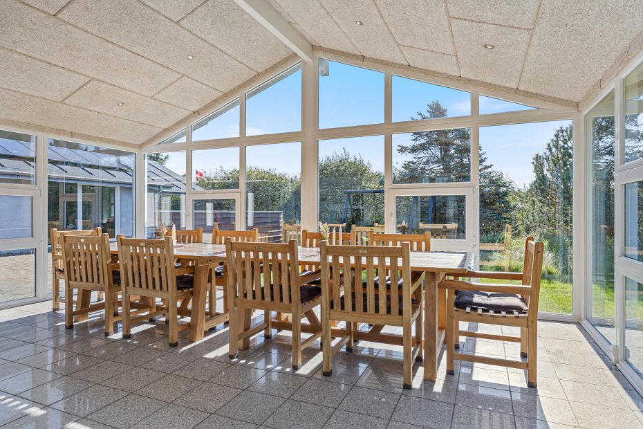 Sommerhuset har også en hel fantastisk havestue, så hvis vejret ikke viser sig fra sin allerbedste side, kan man nyde naturen og lyset i den flotte havestue. Der er vinduer næsten hele vejen rundt, så det føles som at være udenfor. Her er en hyggelig brændeovn så I kan nyde hyggen og varmen som en brændeovn spreder og et langbord til hele familien, der gør at I kan nyde en dejlig middag eller spilaften med jeres egne medbragte brætspil.