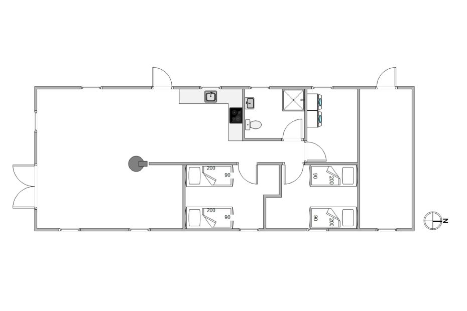 Huset er indrettet til 4 personer, og med et boligareal på 84 m² har I god plads at brede jer ud på. Især i det kombinerede opholdsrum, hvor stue, spiseafdeling og køkken smelter sammen i ét og udgør et hyggeligt mødested. Her kan I få dagene til at gå med afslapning på den dejlige hjørnesofa og sene aftener rundt om spisebordet med et glas rødvin – alt imens brændeovnens knitren høres i baggrunden.