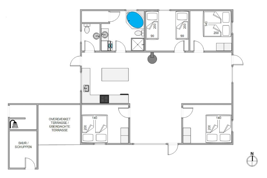 Når op til 8 personer vil holde ferie sammen, er det vigtigt, at der ikke opstår badeværelseskø. På Sand Holms Vej 1 har I ved siden af det store lækre badeværelse med egen spa naturligvis et ekstra gæste-wc. Det er helt uden bekymringer, I efter en lang dag med frisk vesterhavsluft kan fylder spaen op og lade jer glide ned i det varme vand. Her kan I slappe fuldstændigt af og bare nyde at have rigtig ferie.