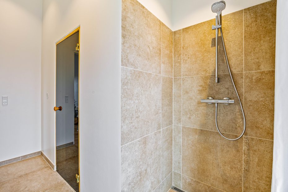 Begge badeværelser er topmoderne, hvoraf det ene er med sauna. På badeværelset findes også vaskemaskine, tørretumbler og pusleplads. Desuden er feriehuset godt isoleret, hvilket også hjælper med til at holde forbruget nede.
