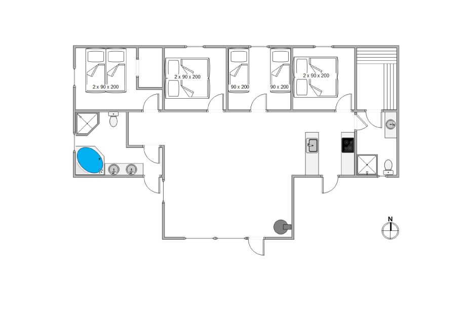 Sommerhuset er yderst velholdt, og der er 4 værelser og 2 badeværelser, og til børnenes store glæde, er der et både et indespa og sauna i det store badeværelse, der giver jer mulighed for at nyde lidt hjemme-wellness. Hele sommerhuset er desuden med troldteks loft, der både giver et stilrent look, men særligt også en god akoustik. Sammen med det store vinduesparti i stuen, sørger troldteksloftet bare for en lys og hjemlig fornemmelse i maven.