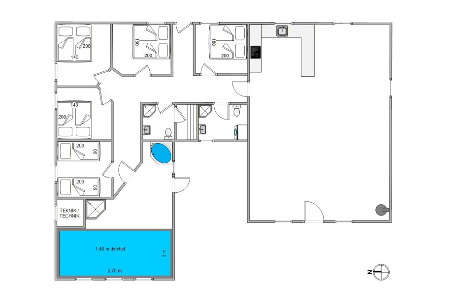Krattet 31 i Søndervig er et oplagt feriehus, hvis I er en stor familie eller to familier, der vil nyde en ferie sammen. Feriehuset har nemlig plads til ti personer samt to hunde. I dette feriehus er der masser af plads til sjov og leg – både ved fodboldbordet og i poolen. Hvis man ønsker lidt afslapning ovenpå alt det sjove, kan man nyde boblerne i spabadet og varmen i saunaen bagefter.