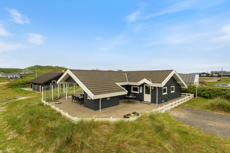 Fra dette dejlige sommerhus kan I nyde solen, mærke den rene, salte havluft og høre havets brusen. På terrassen finder I naturligvis havemøbler, liggestole og grill. I kan derfor uden problemer slå jer ned og nyde den skønne udsigt. Den store terrasse er afskærmet mod sydvest, så her kan I virkelig nyde en masse læ og en lækker aftensmad, med Vesterhavets brusen som baggrundslyd. Terrassen strækker sig næsten hele vejen rundt om huset, og dele af den vender mod øst. På den østlige side af terrassen, er det helt oplagt at nyde morgenkaffen.