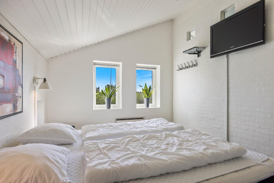 Fordi at vinduerne sørger for et godt lysindfald, samt alle lofter og vægge er hvide, er her derfor meget lyst og rart. Huset tilbyder også en hyggelig hems, hvor I kan hygge med en god bog eller bare nyde det fantastiske lysindfald som ovenlysvinduet giver