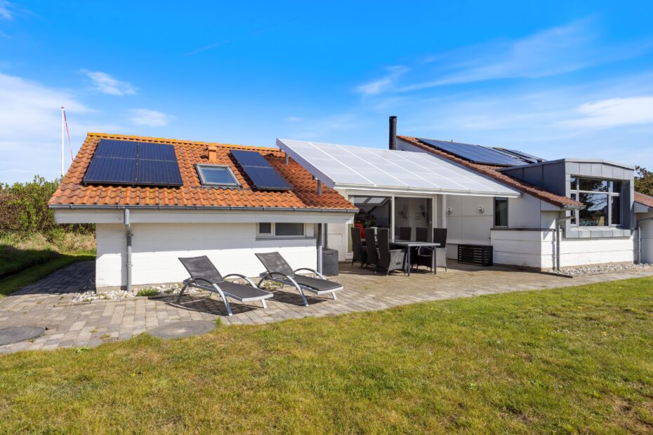 Et virkelig spændende hus med flotte detaljer og hyggelig indretning. Fordelt på 120 kvadratmeter, finder I tre dejlige og lyse værelser, hvoraf to er med dobbeltsenge og et enkelt værelse med to enkeltsenge. I hver ende af huset finder I et badeværelse. Begge er naturligvis med bruser og gulvvarme, hvor det ene er med et indendørs spabad og det andet er med sauna.
