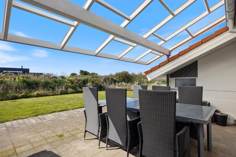 Her på Hvidbjergvej 40 finder I en rigtig dejlig og stor terrasse hvor noget af den er delvis overdækket, hvilket vil forlænge jeres aftener på terrassen. For enden af huset er der også mulighed for at nyde vejret, her er terrassen lidt mere afskærmet, så her vil I kunne finde læ.
