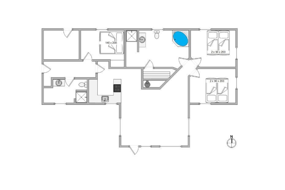 Feriehuset strækker sig over 120 kvadratmeter, og tillader i alt plads til seks personer. Pladsmangel bliver derfor bestemt ikke et problem her. Feriehuset fremstår utroligt flot og indbydende både ude og inde, så I her får de bedste betingelser for en dejlig ferie. Indretningen er moderne, og faciliteterne og materialerne er valgt med omhu, så både æstetikken og kvaliteten er i top. På den måde forvandler det lækre køkken madlavningen til en hyggelig begivenhed, hvor familien kan samles og hjælpes ad, mens feriens oplevelser deles.