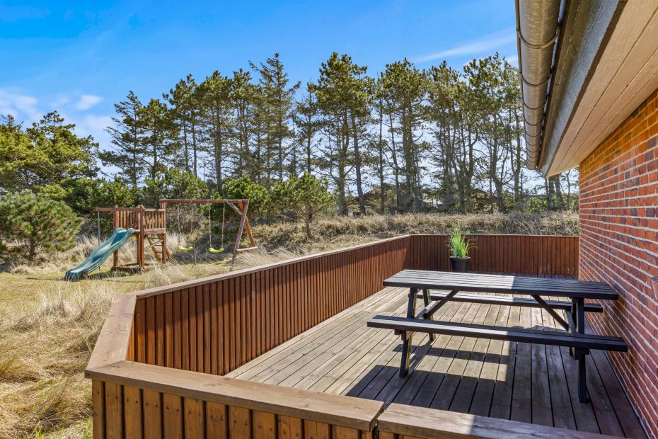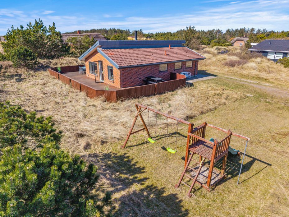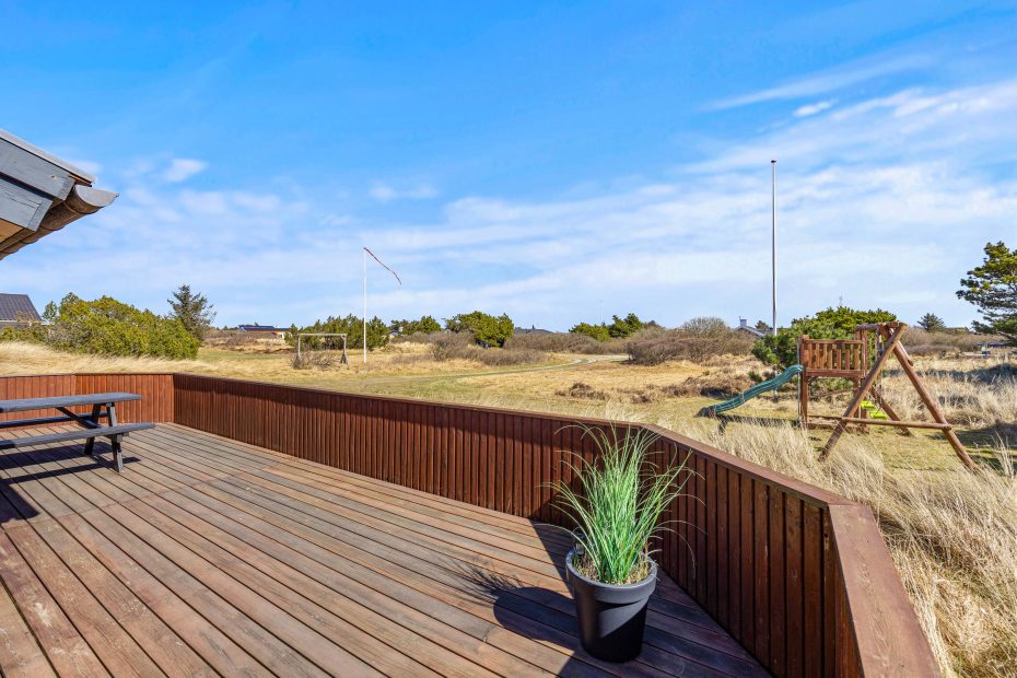 Sommerhuset er rigtig godt egnet til familier med børn, og familiens hund er selvfølgelig også velkommen. Sommerhusets gode størrelse, de moderne faciliteter og brændeovnen indbyder til ren hygge og afslapning med familien – især efter en dejlig gåtur til Vesterhavet. På husets naturgrund mod øst kan børnene hygge sig på gyngestativet og lege i sandkassen.