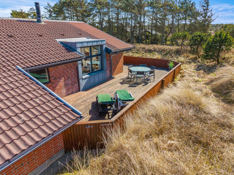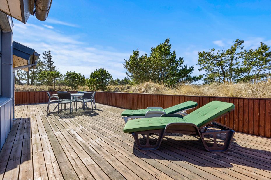 Den skønne lukkede terrasse omkranser huset fra øst, mod syd, og mod vest, så den er helt ideel til familier med hund og med små børn, der gerne selv vil gå på opdagelse. Og da terrassen strækker sig omkring huset, er det muligt at tilbringe det meste af dagen her med afslapning, solbadning og lækker mad tilberedt på grillen, når vejret tillader det.