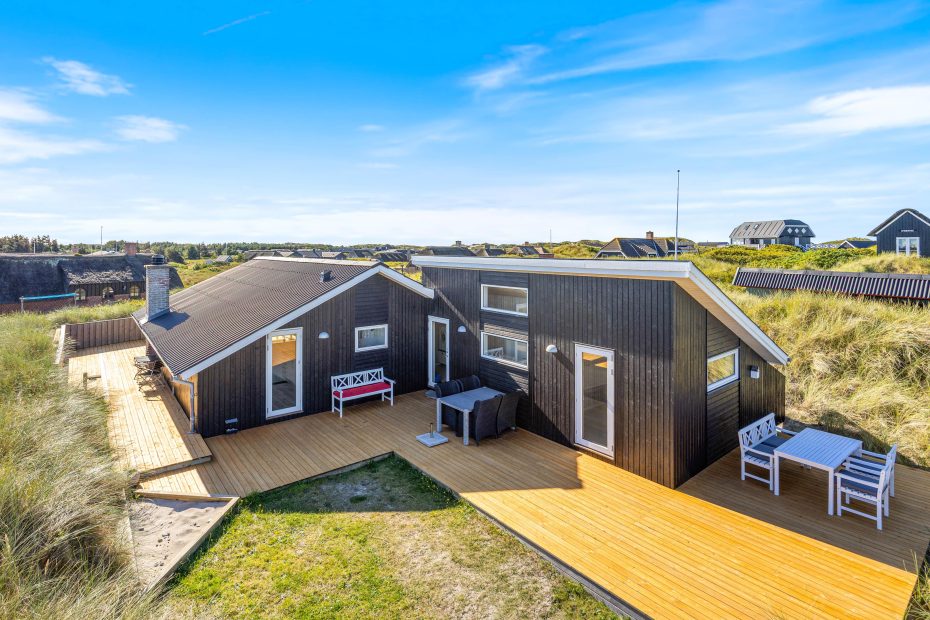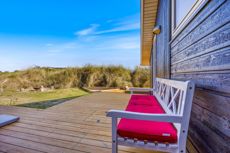 Hele herligheden ligger på en kuperet klitgrund med god afskærmning hele vejen rundt, så I på ugeneret vis kan slappe af og beundre udsigten ud over Søndervigs lyngklædte klitter. Om aftenen kan morgendagens planer blive lagt rundt om havebordet, mens I nyder en veltilberedt grillmiddag og får dagens sidste solstråler med.