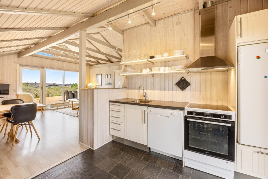 I det åbne opholdsrum, som fungerer som husets hjerte, står brændeovnen, som med sine knitrende flammer altid sætter den gode feriestemning i centrum. Tre gode soveværelser med opbevaringsplads til ferieklæderne sørger for, at I hurtigt kan få pakket kufferterne ud og føle jer hjemme. Opvaskemaskinen i køkkenet og vaskemaskinen i den rummelige entré fjerner fokus fra de huslige pligter, og med hele 2 badeværelser (m. gulvvarme) slipper I for lange køer til badet om morgenen.
