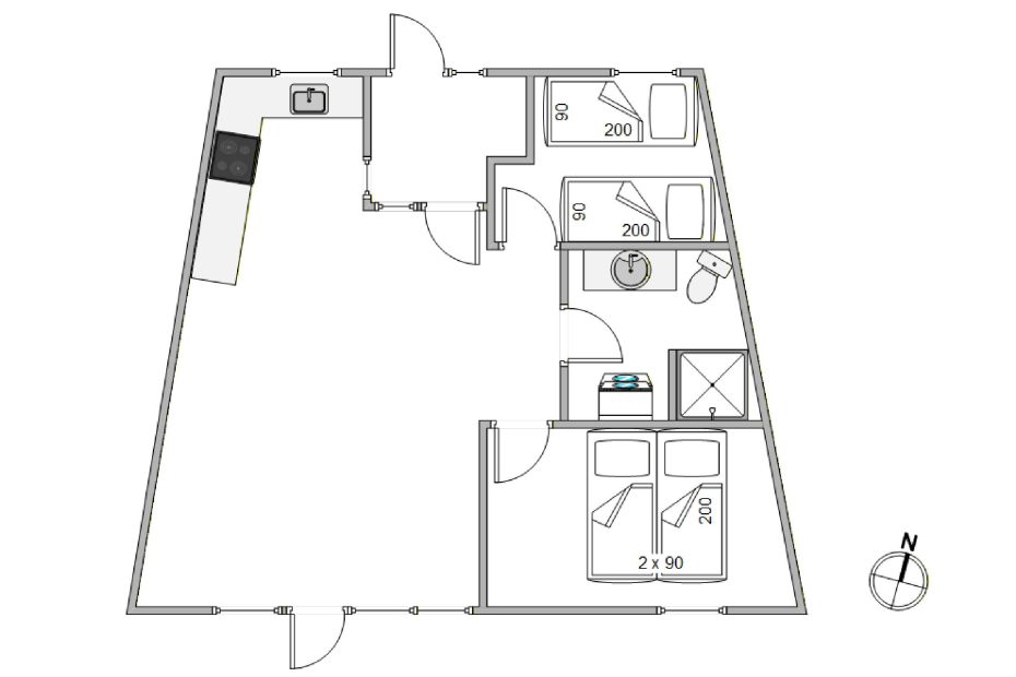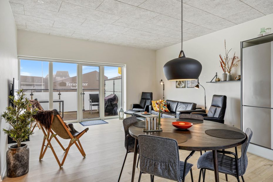 Feriematriklen er opført i 2020 med gulvvarme over det hele og er beliggende på første sal i det nye ferieboligkompleks. Det stilfulde interiør skaber en luksuriøs atmosfære og en god rød tråd i alle rum. Ferielejligheden indeholder 2 soverum og et badeværelse, som alle er udstyret med gulvvarme. Derudover er ferieboligen fuldt udstyret med opvaskemaskine, vaskemaskine og tørretumbler, så I kan nyde en bekvem og afslappende ferie uden praktiske bekymringer.