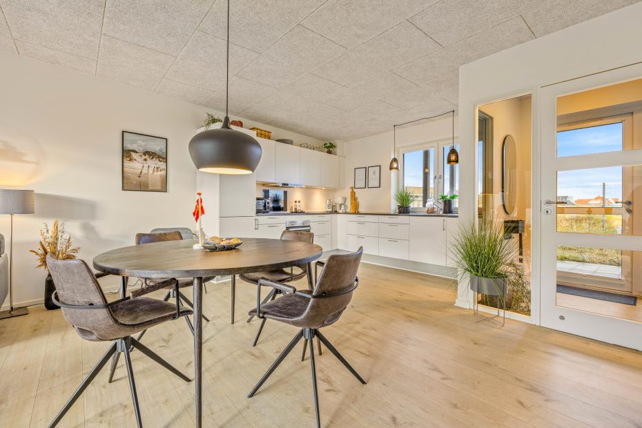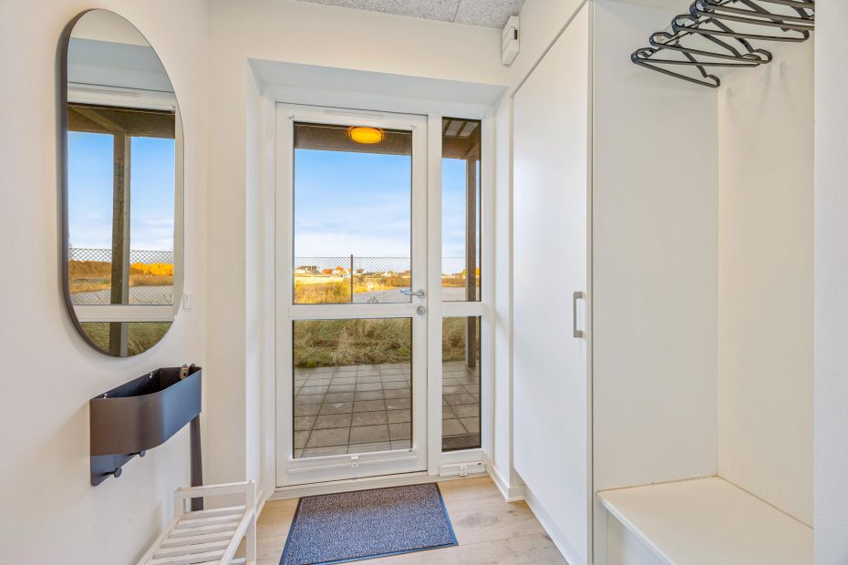 Lejligheden på Lodbergsvej 38C har et godt og rummeligt opholdsrum, hvor naturen er flyttet ind i indretningen. Mange naturelementer og farver skaber de perfekte rammer for jeres ferie i den vestjyske natur, midt imellem hav og fjord.