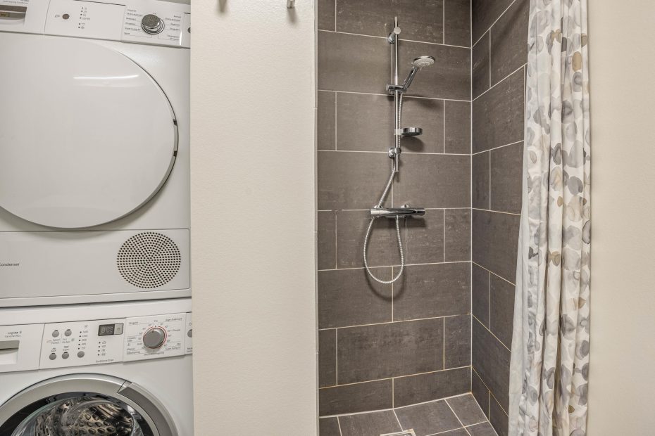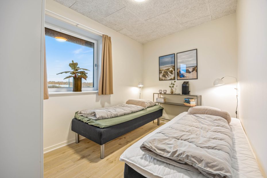 Køkkenet er veludstyret og har masser af skabsplads. Det er udstyret med både kapsel-kaffemaskine, mikrobølgeovn, opvaskemaskine og en separat frysedel i køleskabet på 80 l. God plads til at I i fællesskab kan nyde jeres ferie sammen. Lejlighedens 2 soveværelser er, ligesom resten af lejligheden, udstyret med gulvvarme og har henholdsvis en dobbeltseng og to enkeltsenge. Naturen spiller også en stor rolle og giver en særlig ro og charme til værelserne. Badeværelset med gulvvarme har alt, hvad I har brug for i form af en bruseniche, en stor håndvask med god skabsplads, både en vaskemaskine og tørretumbler.
