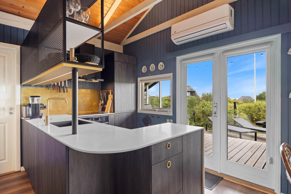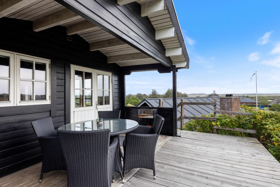 Sommerhuset har flere skønne terrasser – både en afskærmet og overdækket samt åben del. Her er masser af hyggekroge, hvor I kan sætte jer til rette med en god bog eller en lækker frokost i solen. Der er sandkasse til børnene, og så får I også en gasgrill, så I nemt og hurtigt kan tilberede en lækker grillmiddag.