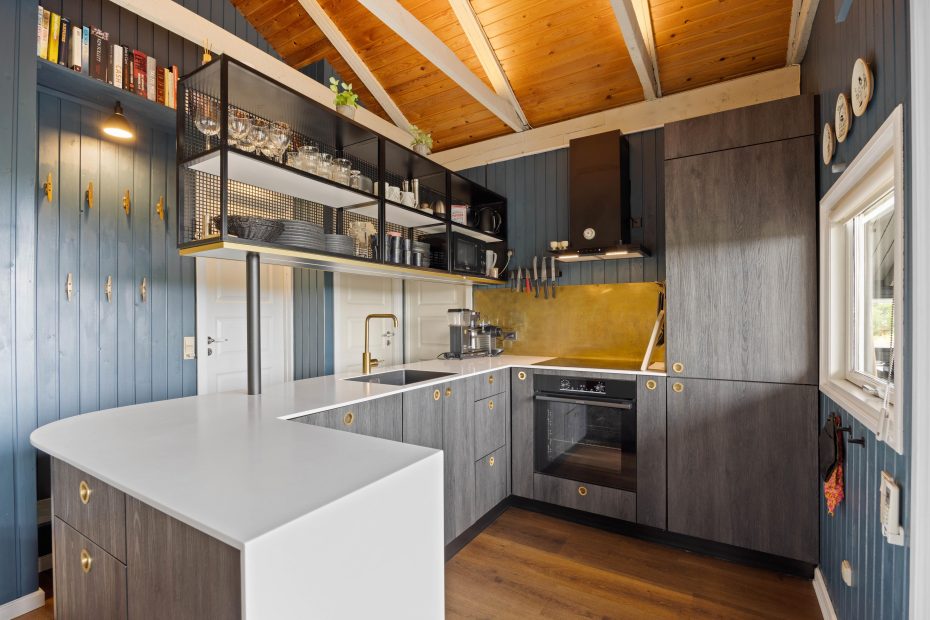 Køleskab, fryser (80 L), microbølgeovn, opvaskemaskine.