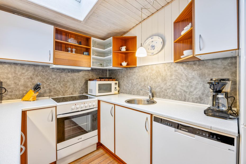 Sommerhusets hjerte er det kombinerede stue- og køkkenalrum. Her kan I samle hele flokken til en masse skønne feriestunder med kortspil, afslapning på sofaen og lækre middage rundt om spisebordet. Brændeovnen sørger med sine knitrende flammer for at sende feriestemningen helt til vejrs på sene aftener såvel som regnfulde dage.