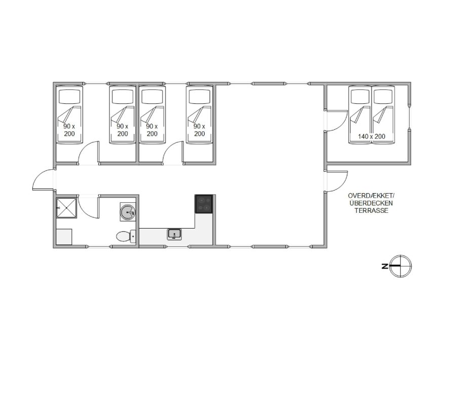 Sommerhuset ligger på en indhegnet naturgrund, hvilket især er praktisk, hvis I har hunden med på ferie. På den overdækkede terrasse kan I nyde det omkringliggende landskab sammen med en god kop kaffe, og der er også en lille have med ekstra siddekroge og udsigt til Søndervigs klittoppe.