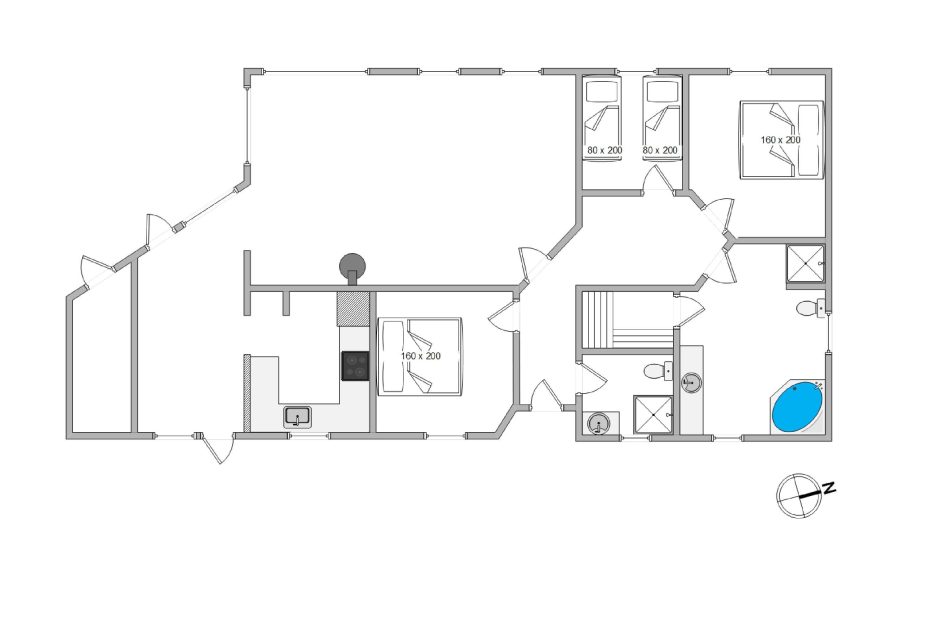 Med 120m2, er der garanteret god plads til jer alle. Her er tre soverum, hvoraf de to er med gode dobbeltsenge og et værelse er med to enkeltsenge. For ægte afslapning og velvære er der i husets ene badeværelse både sauna og spa og imens I slapper af, klarer kombi-maskinen tøjvasken, så I ikke behøver bekymre jer om, I har medbragt nok håndklæder eller skiftetøj på ferien. I kan således sidde og slappe af i saunaen eller spabadet og lade batterierne op, så I er klar til nye eventyr på ferien.
