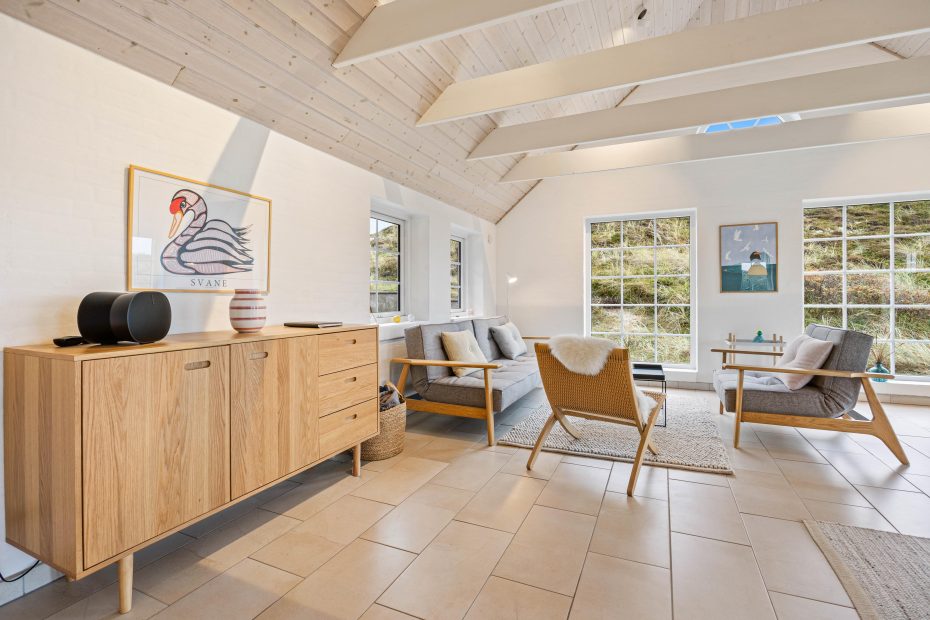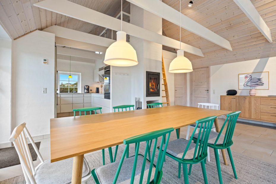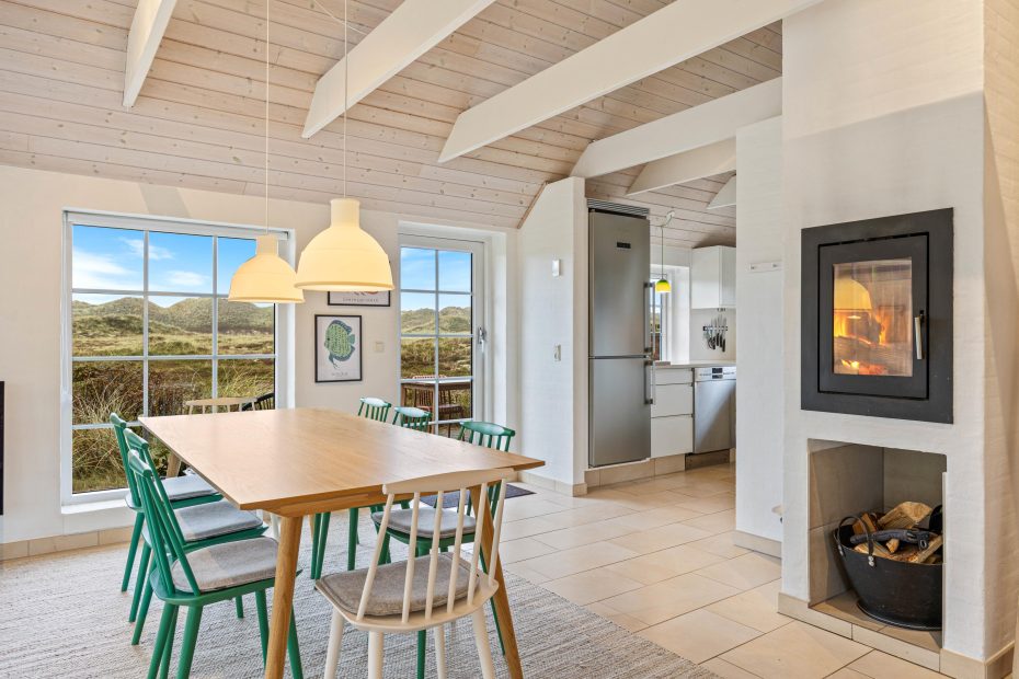 Den yderst smagfulde indretning byder på alt, hvad I skal bruge til jeres ferie på vestkysten. Det lyse og moderne køkken er indrettet med kvalitets hårde hvidevarer og følger stilen fra resten af sommerhuset, så det fremstår velintegreret. Her kan den professionelle feriekok slå sig løs og nyde udsigten på klitlandskabet imens.
