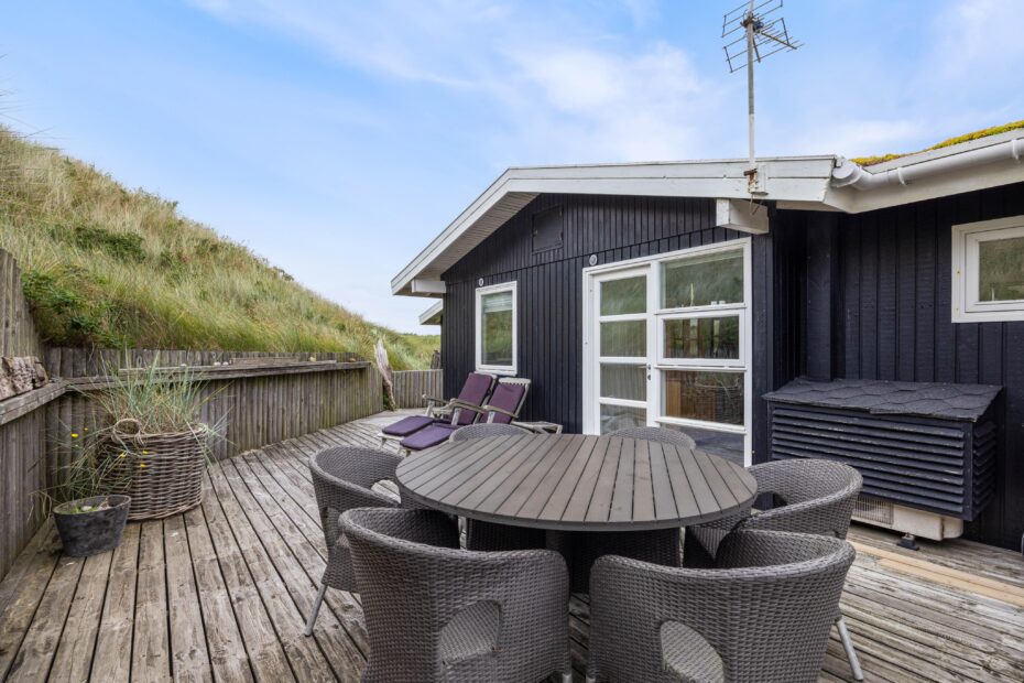 Houvig er et roligt og naturskønt ferieområde med smukt klitlandskab, så langt øjer rækker. Nyd udsigten fra den store, læfyldte terrasse, som har en overdækket del og giver jer mulighed for at sidde ude i den friske luft i næsten alt slags vejr.
