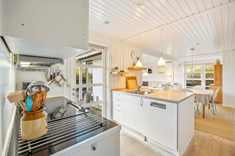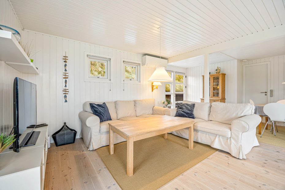 Feriehuset er både hyggeligt og praktisk indrettet, og mens køkkenet er udstyret med opvaskemaskine, kan I også hurtigt få vasket tøj ved hjælp af husets vaskemaskine og tørretumbler. En hurtig internetforbindelse sørger for, I kan streame film og serier i massevis, og de 2 badeværelser hjælper til at undgå de lange toiletkøer om morgenen.