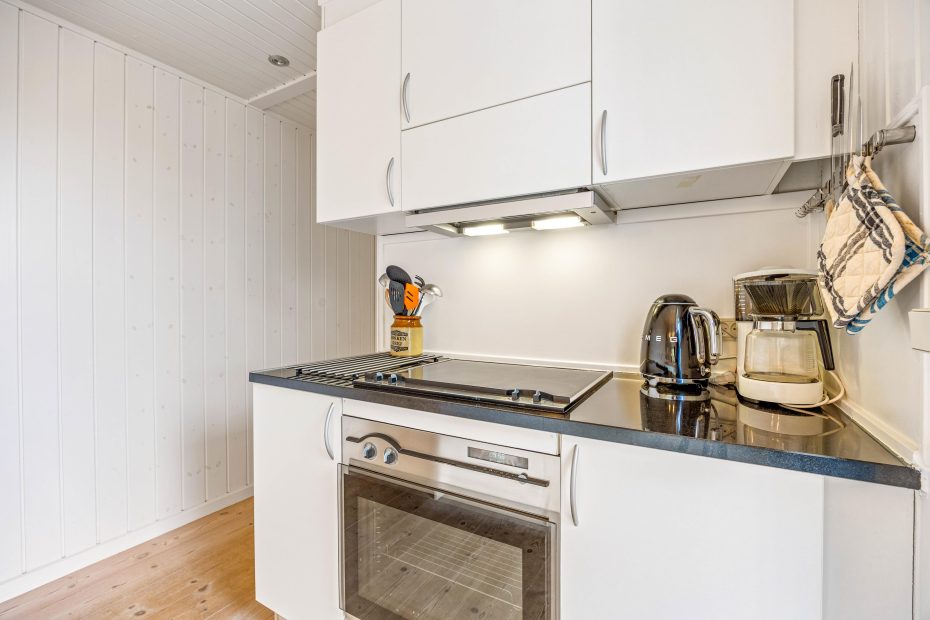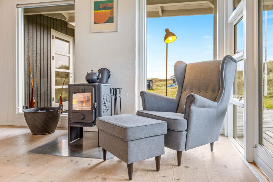 I opholdsrummet ligger stuen i åben forbindelse med det veludstyrede køkken, og der vil med garanti blive brugt mange hyggelige feriestunder på sofaen foran den knitrende brændeovn og rundt om spisebordet, hvor morgendagens planer bliver lagt over en god feriemiddag. Fordi at både køkken, spisestue og sofastuen er samlet et sted, er det muligt for jer at tilbringe masser af kvalitetstid med jeres medrejsende.