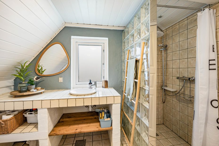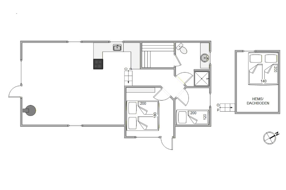 Det lille feriehus råder over 2 soverum og en hems. Det ene soverum råder over en dobbeltseng, hvor I i det andet soverum finder en sovesofa med plads til 2 personer. Hvis I har børnene med på tur, er der i stedet for mulighed for at sove på hemsen hvilket er ideelt for de lidt større børn.