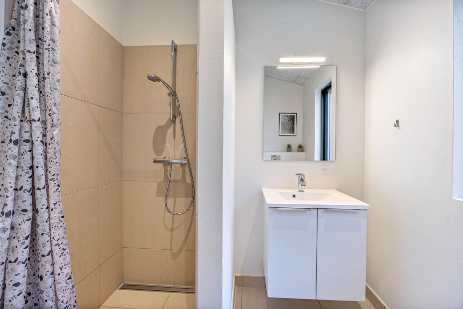 Sommerhusets master bedroom har eget badeværelse med udgang ud til udendørs sauna, hvor I, som par, rigtig kan nyde tiden med hinanden. Eller hvad med et godt glas rødvin ved den knitrende brændeovn, mens børnene snorker om kap i soveværelset?