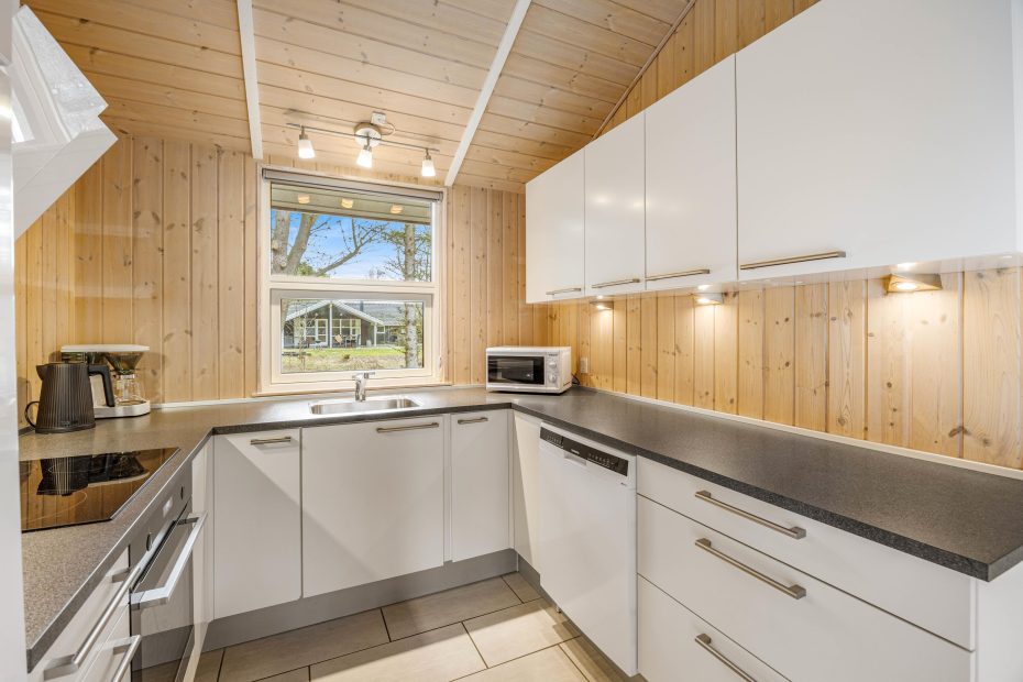 Husets hjerte og samlingspunkt er det lyse køkken-opholdsrum, hvor der er højt til loftet og plads til det hele. Den fine køkkenafdeling fra 2020 har alt, hvad der er nødvendigt til en god ferie, bl.a. 100 l. fryser, mikroovn og opvaskemaskine, så alle kan bruge tiden samvær og oplevelser.