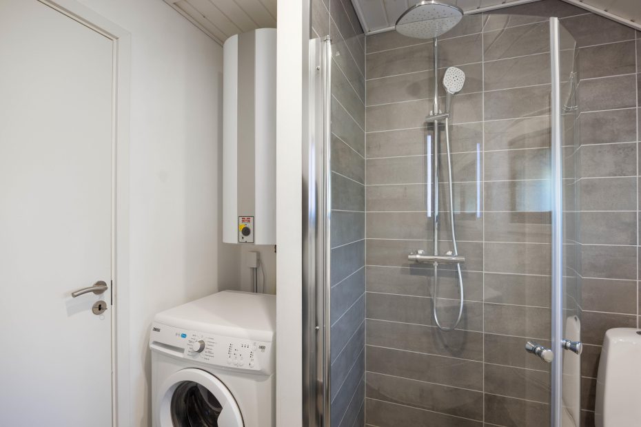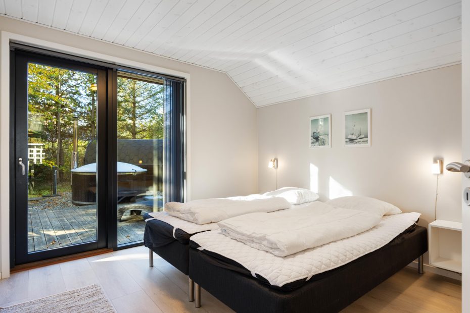 Sommerhuset har tre soveværelser, alle indrettet med dobbeltsenge, og hele to badeværelser – begge med komfortabel gulvvarme. Her er der god plads og moderne faciliteter til hele familien, og op til to hunde er også velkomne.