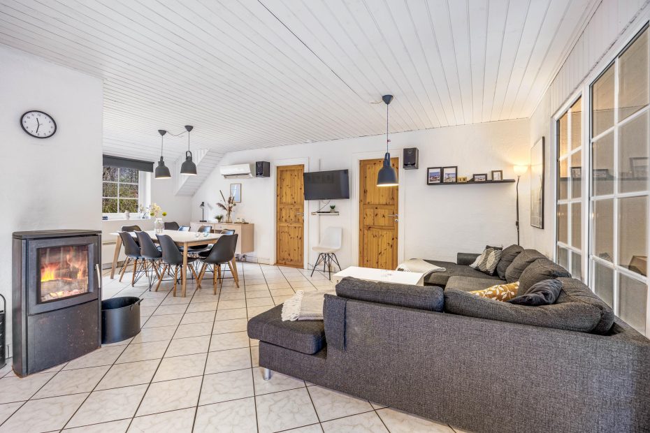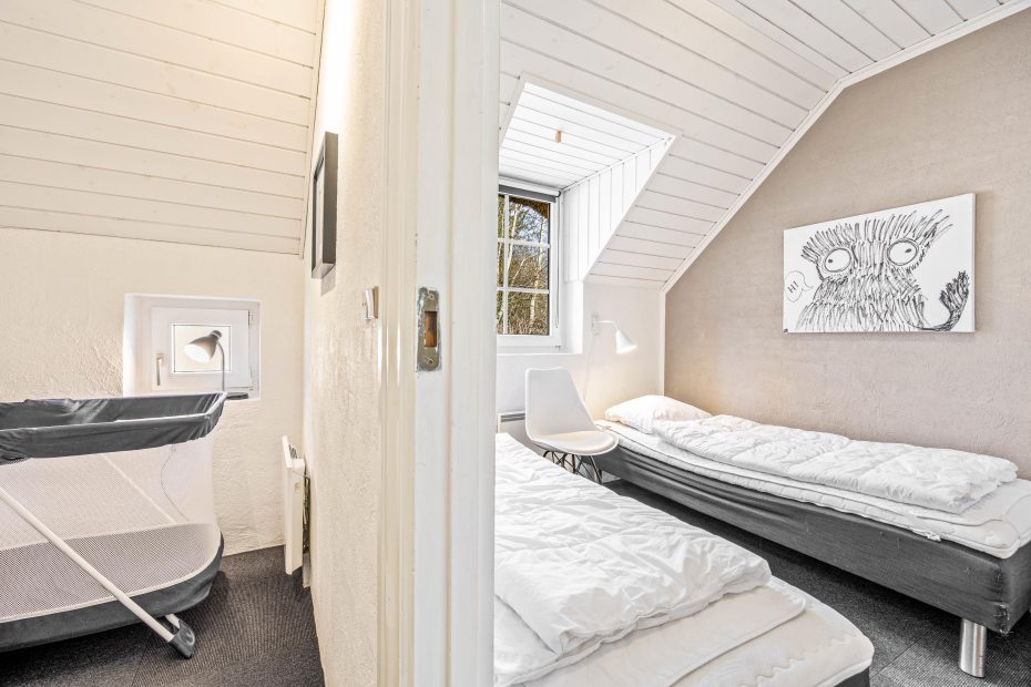 For enden af en stikvej finder man dette hyggelige poolhus, der er stort nok til at huse flere familier. Huset er fordelt på 5 soverum hvoraf de 3 har dobbeltsenge og der er også en lille hems, hvor de yngste i familien kan hygge sig med ipad eller spillekonsoller. Stuen har et integreret køkken og det åbne stuerum indbyder til mange timers hyggeligt samvær. Sommerhuset har 2 badeværelser, hvor det ene badeværelse fører ud til saunaen og poolrummet og den dejlige poolafdeling. Poolen er udstyret med en svømmetræner, så man kan svømme imod strømmen og få trænet lidt i ferien også. Der er også en lille rutschebane.