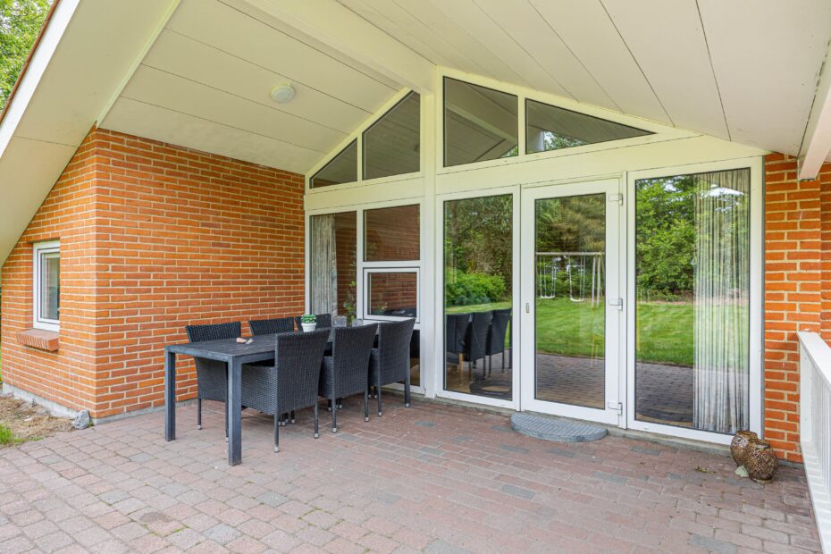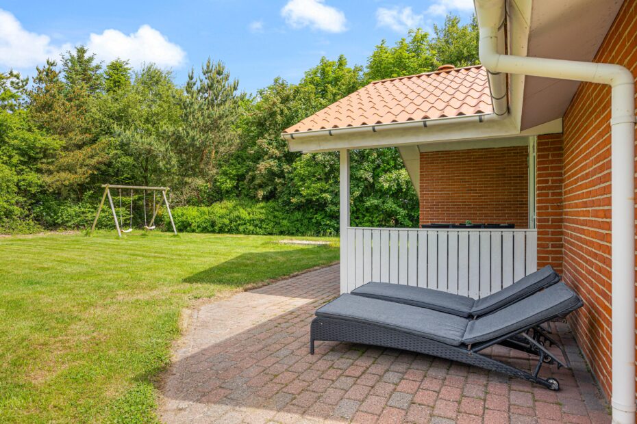 Nyd hyggelige timer ude i den friske luft på den overdækkede terrasse. Her er der havemøbler og grill til rådighed, så det er oplagt – på dage med godt vejr – at runde aftenerne af med god mad og hyggeligt selskab på terrassen. Der er en gynge og en sandkasse til børnene, som de helt sikkert ville kunne tilbringe mange timers sjov ved. Den græsklædte grund afrunder de udendørs faciliteter og giver masser af plads til leg og afslapning. Fordi Nissum Fjord kun ligger ca. 500 meter væk fra feriehuset, kan I gå mange dejlige ture ved vandet.