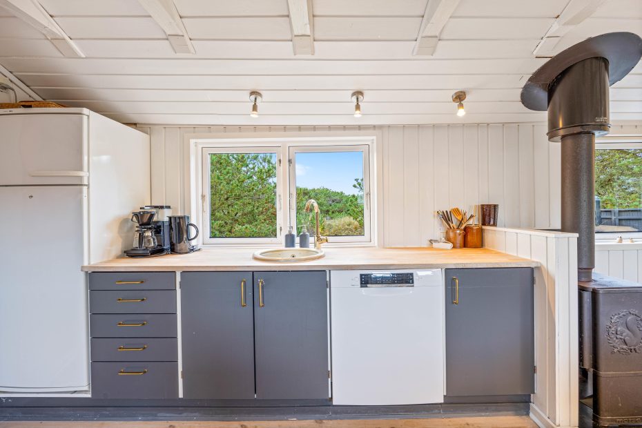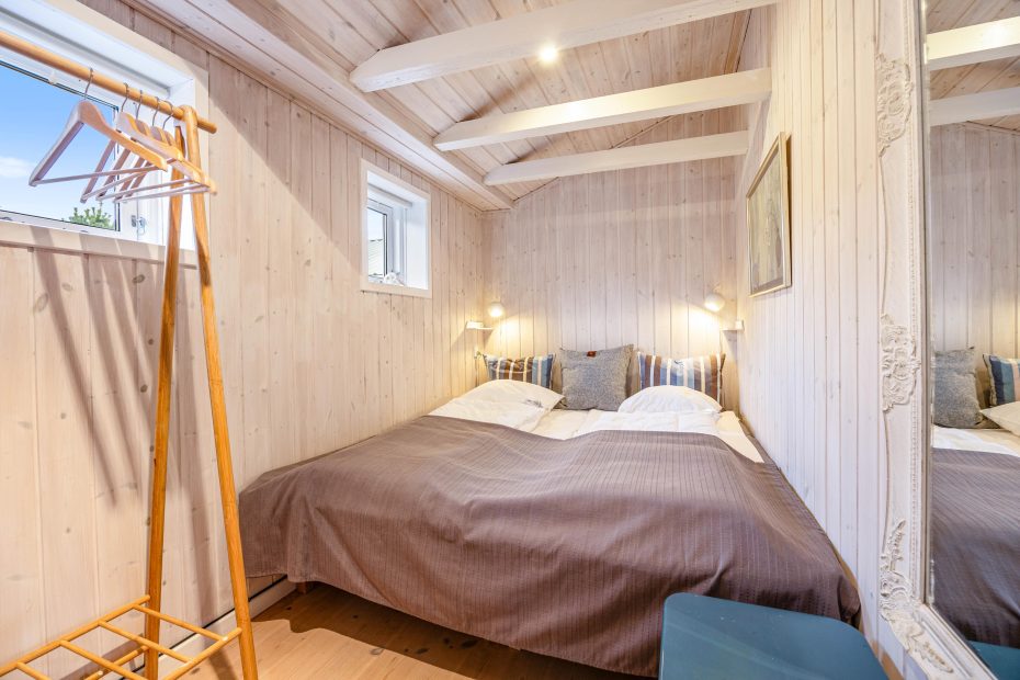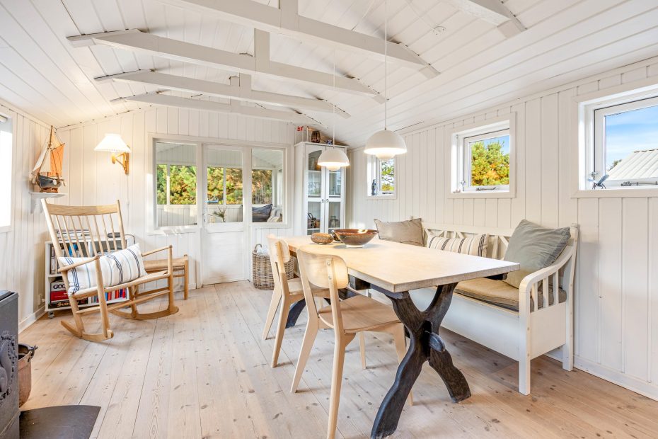 Det lille træhus på Bjerghuse 113 leder straks tankerne hen på den klassiske sommerhusferie. Sommerhuset har i 2020 gennemgået en delvis renovering, som har resulteret i et charmerende og velafstemt indre med fine detaljer og en indbydende atmosfære. Og praktiske detaljer som vaskemaskine og tørretumbler gør, at feriekufferten ikke behøver at være så tung.