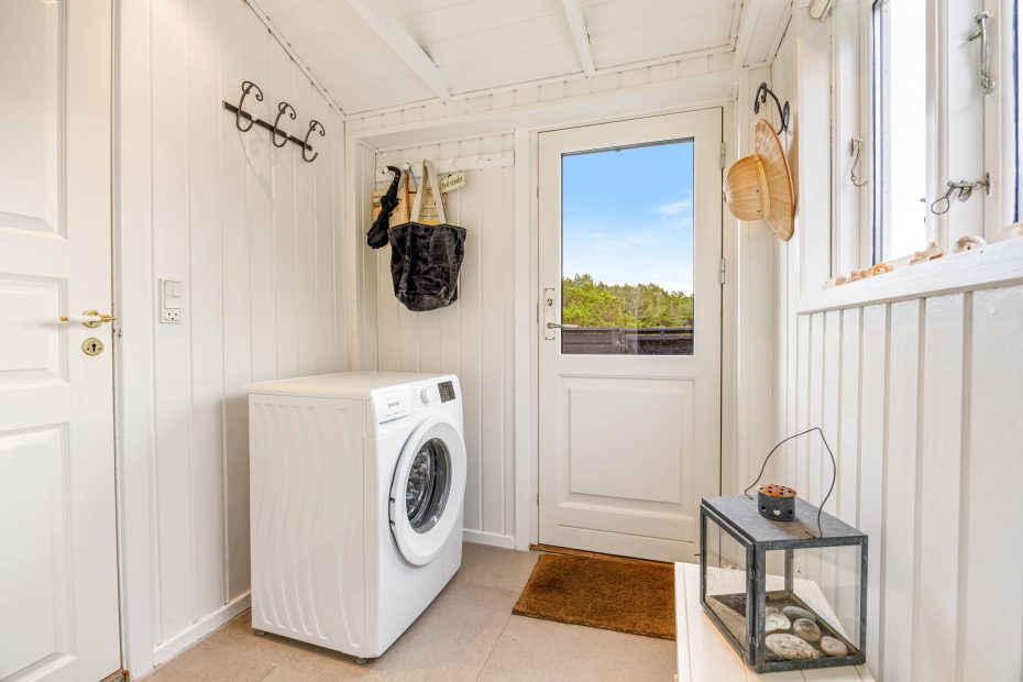 Sommerhuset er beliggende på en hele 3.000 kvadratmeter stor naturgrund i Fjand, der er godt afskærmet af træer og buskads. Her kan I ganske ugeneret nyde den friske luft på en af de gode terrasser. Alle terrasserne er lukket af, hvilket ikke kun giver jer privatliv, men også er praktisk, hvis I har hunden med på ferie. Her finder I også en lækker ugeneret udebruser, så I kan få skyllet jer efter en varm dag i solen.