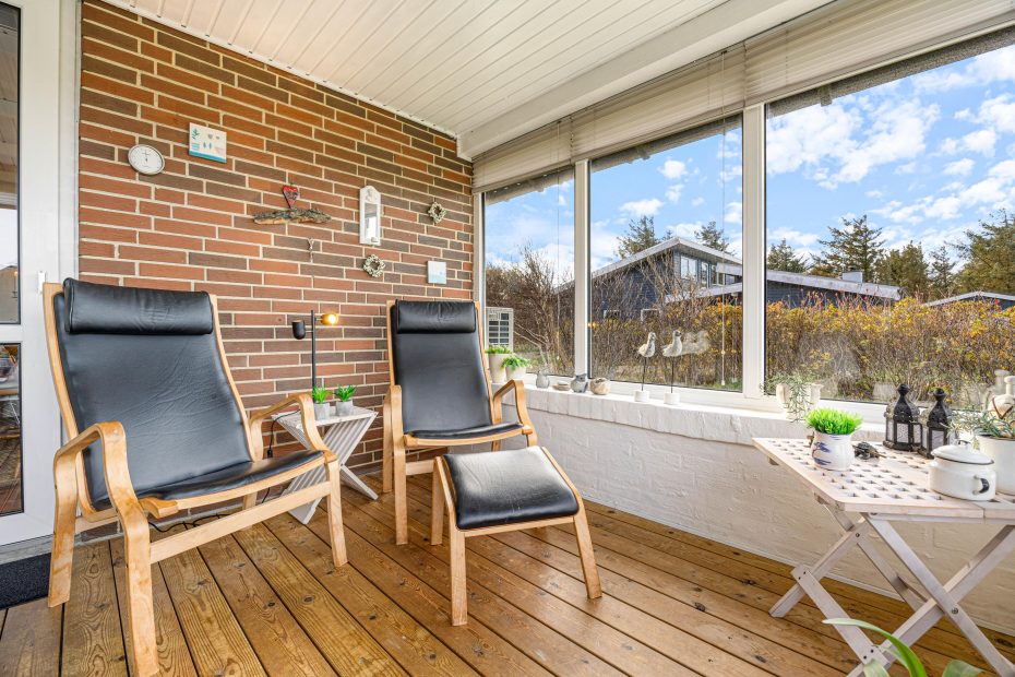 Fra udestuen har I en enestående udsigt! Selv fra spisebordet kan I nyde udsigten over fjorden og klitterne. Mange eftermiddage med brætspil indenfor, hvor der er dejligt lunt, mens vinden suser afsted udenfor.