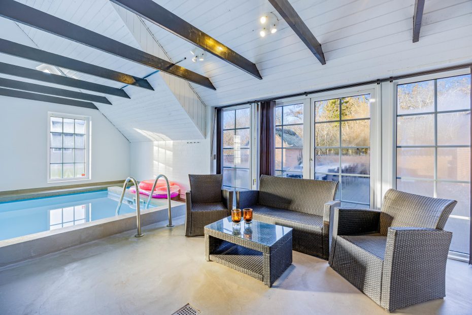 Det helt store højdepunkt i sommerhuset på Sdr. Fjandvej 36 er uden tvivl poolområdet. Her venter jer en 25 m2 stor swimmingpool med rutsjebane, hvor voksne såvel som børn kan slå sig løs i en masse forskellige vandlege. Skulle I få brug for en pause, kan I sætte jer til rette i loungemøblerne, inden legene igen fortsætter.