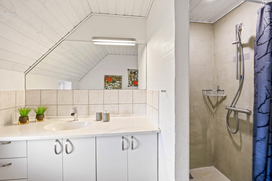Sommerhuset på 212 kvadratmeter er rummeligt og godt indrettet, så der er masser af plads til alle 14 gæster og 2 hunde. Hele 6 soveværelser, der er indrettet med enten dobbeltsenge, enkeltsenge eller køjesenge, samt 3 badeværelser, alle med gulvvarme, er at finde i det lækre feriehus.